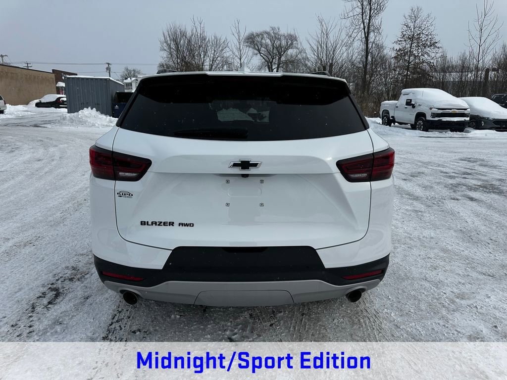 The Midnight/Sport Edition package takes the Blazer's already impressive appearance to the next level, with a gloss black grille, black exterior accents, and stunning 18-inch black wheels. This vehicle is not only eye-catching, but it also boasts a wealth of advanced safety features, including Lane Change Alert with Side Blind Zone Alert, Rear Cross Traffic Alert, and Rear Park Assist with Audible Warning, ensuring your peace of mind on the road.