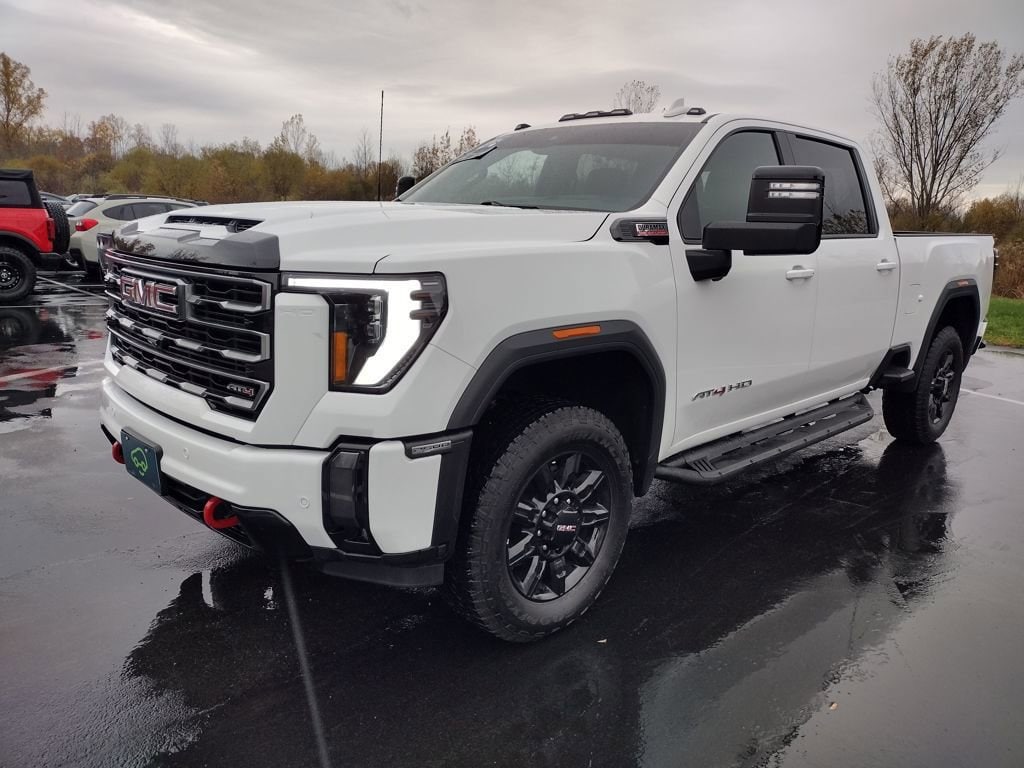 2024 GMC Sierra 2500HD AT4 Summit White AT4 EDITION, FULL U.S. FACTORY WARRANTY, CLEAN CARFAX, DURAMAX 6.6L DIESEL, REMOTE START, BOSE HIGH END SOUND PACKAGE, HEATED STEERING WHEEL, HEATED AND COOLED SEATS / CLIMATE PACKAGE, LEATHER SEATS, MULTI-PRO TAILGATE, INTEGRATED TRAILER BRAKE CONTROLLER, HEAVY DUTY TRAILER PACKAGE, DUAL ALTERNATORS, ADAPTIVE CRUISE, AT4 PREFERRED PACKAGE, TECHNOLOGY PACKAGE WITH HEADS UP DISPLAY AND REAR CAMERA MIRROR, 10-Speed Automatic, 4WD, Jet Black With Kalahari Accents Leather, 120-Volt Bed Mounted Power Outlet, 120-Volt Instrument Panel Power Outlet, 2 Charge-Only Rear USB Ports, 2 Charge/Data USB Ports Inside Center Console, 2 USB Ports, 2-Speed Active Transfer Case, Adaptive Cruise Control, AT4 Preferred Package, Bed View Camera w/2 Trailer Camera Provisions, Bose Premium 7-Speaker Sound System, Deep-Tinted Glass, Electric Rear-Window Defogger, Floor-Mounted Center Console, Front Prem Floor Liners w/Removable Carpet Insert, Front Rain-Sensing Wipers, Gloss Black Header Grille & Grille Insert Bars, GMC Connected Access Capable, HD Surround Vision, Heated 2nd Row Outboard Seats, Heated Driver & Front Outboard Passenger Seats, Hill Descent Control, Inside Rearview Auto-Dimming Rear Camera Mirror, Integrated Trailer Brake Controller, Keyless Open & Start, LED Cargo Area Lighting, LED Smoked Amber Roof Marker Lamps, Manual Tilt-Wheel/Telescoping Steering Column, Multicolor 15 Diagonal Head-Up Display, OnStar & GMC Connected Services Capable, Power Front Passenger Windows w/Express Up/Down, Power Sliding Rear Window w/Defogger, Preferred Equipment Group 4SB, Push Button Start, Rear Cross Traffic Alert, Rear Prem Floor Liners w/Removable Carpet Insert, Rear Wheelhouse Liners, Remote Vehicle Starter System, Safety Alert Seat, SiriusXM w/360L, Spray-On Bedliner w/AT4 Logo, Steering Wheel Audio Controls, Technology Package, Trailer Cam Provisions & Trailer Viewing Software, Trailer Side Blind Zone Alert, Ultrasonic Front & Rear Park Assist, Unauthorized Entry Theft-Deterrent System, Universal Home Remote, Ventilated Driver & Front Passenger Seats, Wireless Charging, Wireless Phone Projection, X31 Off-Road Package. Odometer is 25406 miles below market average! We have over 55 Years of Experience Serving WNY & all over the United States. Certified.