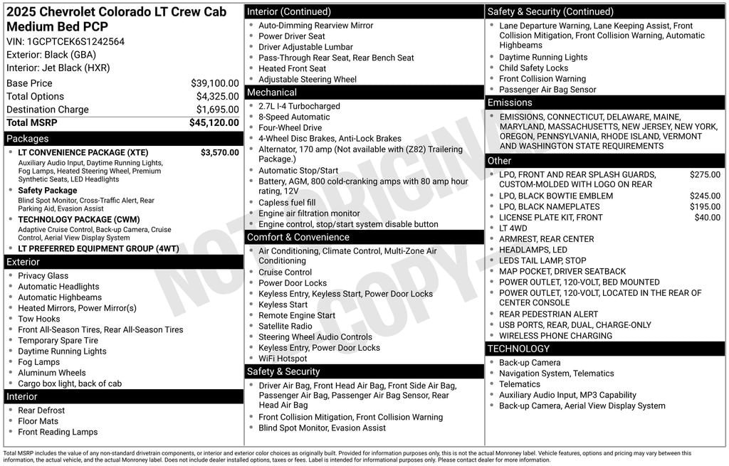 **Vehicle availability, pricing, and description are subject to change without prior notice. While we make every effort to provide accurate information on this site, the actual description and condition of the vehicle must be verified by you at the time of purchase. ** Price includes: $1750 - Customer Cash. Exp. 01/02/2026 $2000 - Chevrolet Mid-Pickup Competitive Cash Allowance. Exp. 01/02/2026