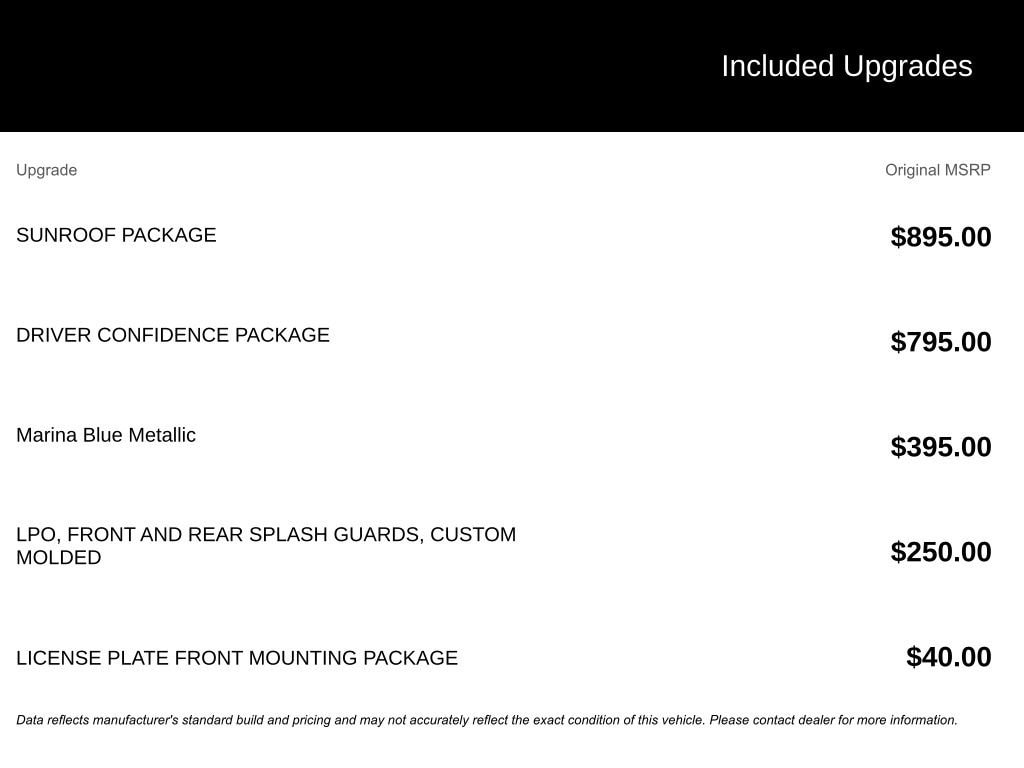 - Sunroof Package: