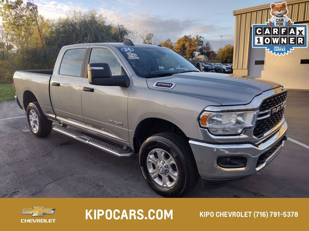 2024 Ram 2500 Big Horn Billet Silver Metallic Clearcoat 2 Way Rear Headrest Seat, 2nd Row In Floor Storage Bins, 4 Way Front Headrests, 40/20/40 Split Bench Seat, 4G LTE Wi-Fi Hot Spot, 8.4 Touchscreen Display, Apple CarPlay, Auto Power-Folding Mirrors, Big Horn IP Badge, Black Exterior Mirrors, Bluetooth Handsfree Phone & Audio, Center Hub, Connectivity - US/Canada, Dual Glove Boxes, Exterior Mirrors Courtesy Lamps, Exterior Mirrors w/Heating Element, Exterior Mirrors w/Supplemental Signals, Foam Bottle Insert (Door Trim Panel), Footwell Courtesy Lamp, For Details, Visit DriveUconnect.com, For More Info, Call 800-643-2112, Forward & Reverse Utility Lights, Front Armrest w/Cupholders, Front Center Seat Cushion Storage, Front Fog Lamps, Front Seat Back Map Pockets, Global Telematics Box Module (TBM), Glove Box Lamp, Google Android Auto, GPS Antenna Input, Integrated Center Stack Radio, Integrated Voice Command w/Bluetooth, Leather Wrapped Steering Wheel, Level 1 Equipment Group, Locking Lower Glove Box, Manual Adjust 4-Way Front Passenger Seat, Mirror Running Lights, Power 2-Way Driver Lumbar Adjust, Power Adjust 8-Way Driver Seat, Power Adjust Mirrors, Power Adjustable Convex Aux Mirrors, Power Heated Fold Telescope Mirrors, Power Telescoping Mirrors, Premium Cloth 40/20/40 Bench Seat, Quick Order Package 2GZ Big Horn, Radio: Uconnect 5 W w/8.4 Display (A62), Rear 60/40 Folding Seat, Rear Dome w/On/Off Switch Lamp, Remote USB Port - Charge Only, Selectable Tire Fill Alert, SiriusXM Radio Service, SiriusXM Satellite Radio, Steering Wheel Mounted Audio Controls, Storage Tray, Wheels: 18 x 8.0 Polished Aluminum. We have over 55 Years of Experience Serving WNY & all over the United States.